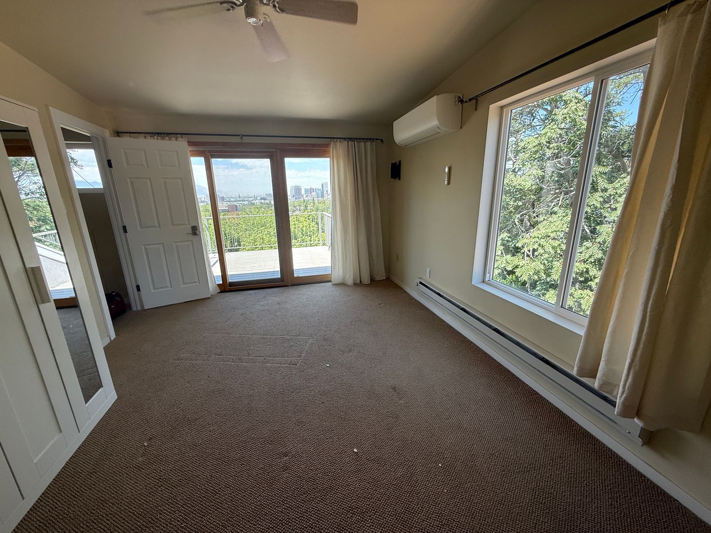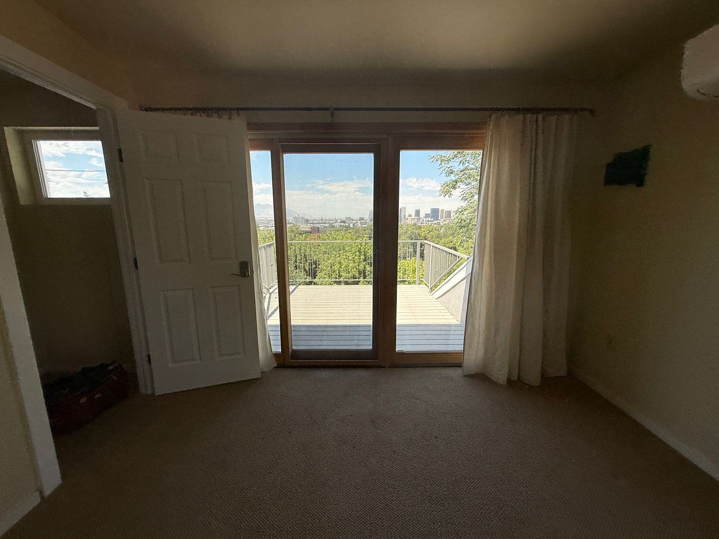 Room A - 16x11 Massive room, This huge room on the top floor is stunning with PRIVATE BALCONY WITH the most magnificent view of sunset, unobstructed view of the city skyline and more. It's like a personal retreat with your own split AC so you can control temperature. The private deck would be just you only. You will share bathroom with 1 other roommate who is on top floor ( Suggest price for 9 people $1295 or 8 people $1450) Pics 28- 46, and pic 47-49 shows the bathroom you share with Room B)