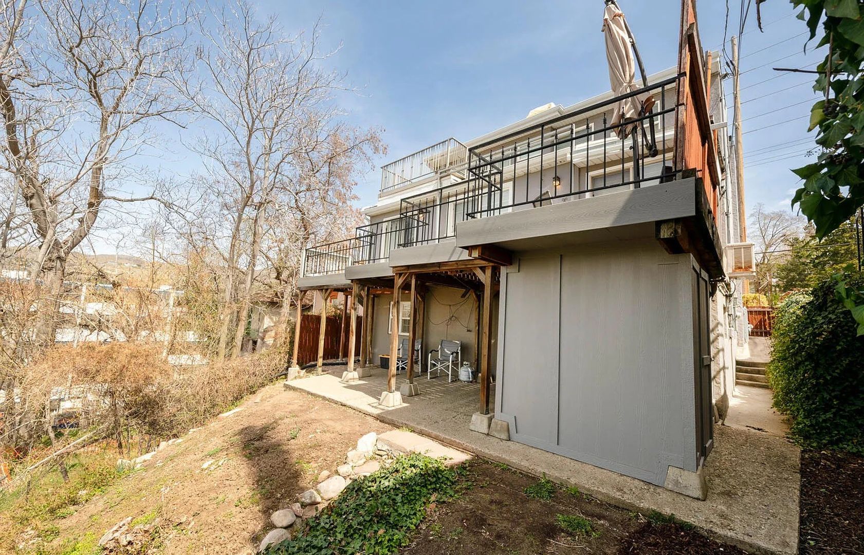 * Backyard is sloped , you can plan gardens as well